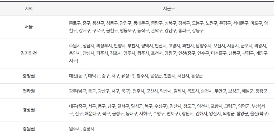 ※ 참여가능한 지역이 정해져 있으며, 시범사업 참여를 신청하는 당시 주민등록상 주소지가 위와 같이 해당 되어야 합니다.