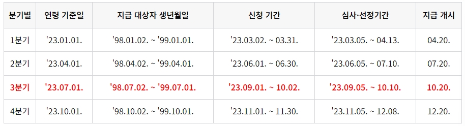 1. 신청서 작성 : 본인이 몇 분기부터 지급대상자인지 확인하기
