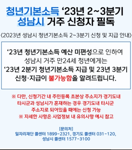 ※ 23년 2~3분기 성남시 거주 신청자 신청 및 지급 불가능함.