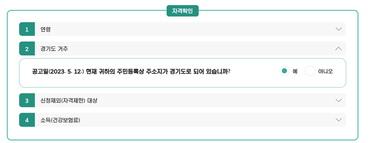1. 공고일(23.5.12.)기준 주민등록상 주소지가 경기도인 청년
