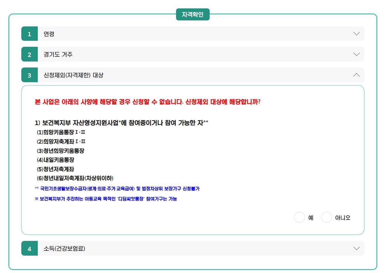 ※ 예외 : 병역의무이행자는 병역기간만큼 신청 연령 연장(최고 만 39세)