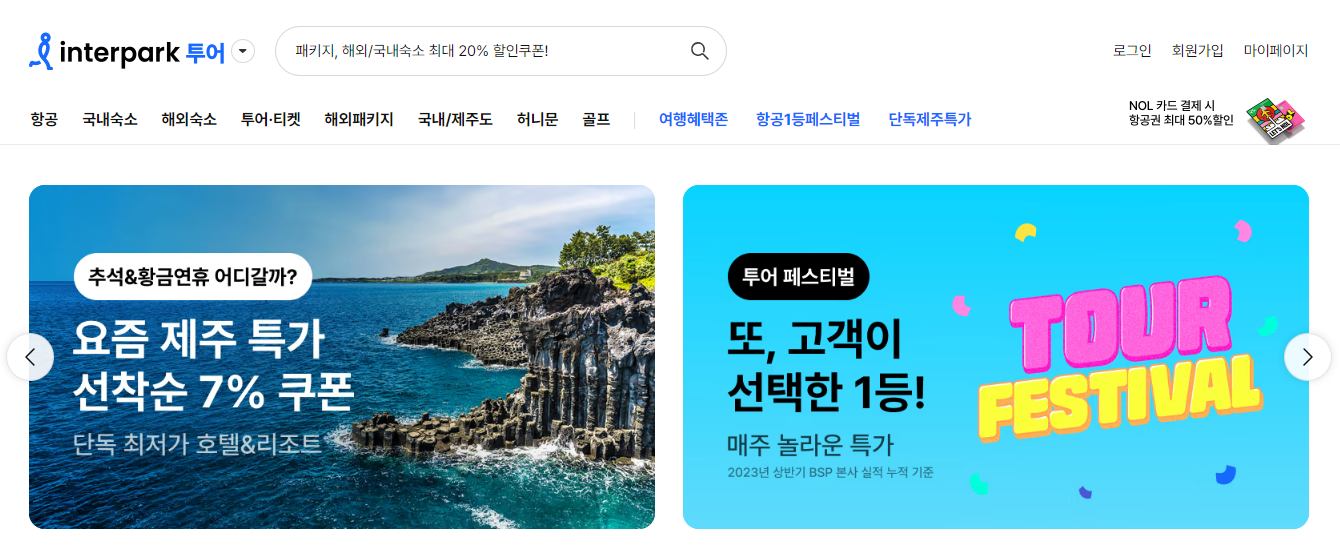 국내항공권을 비롯한 해외여행 가실 때도 유용하게 검색해 보실 수 있는 인터파크 투어입니다. 신뢰 가는 최저가 제주도 항공권 구매하실 수 있습니다. 그밖에 패키지, 호텔 모두 예약이 가능합니다.
