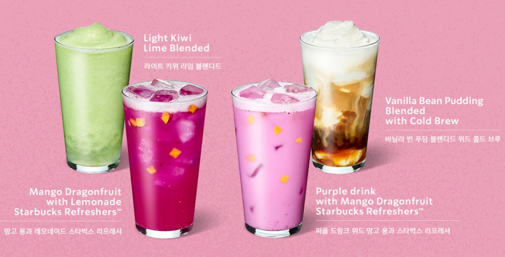 라이트 키위 라임 블렌디드, 바닐라빈 푸딩 블렌디드 위드 콜드 브루,